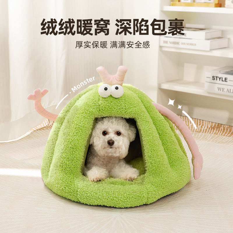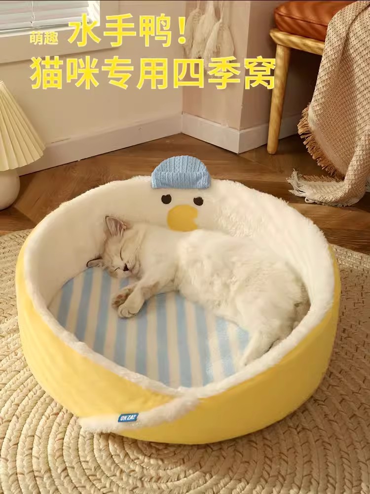 Satu potong kandang kucing hangat dapat dilepas dan dicuci sarang hewan peliharaan semi-tertutup ruang kucing empat musim tersedia sarang anjing sarang hewan peliharaan kartun