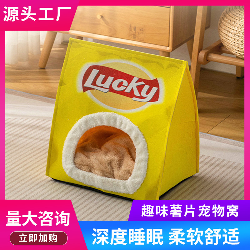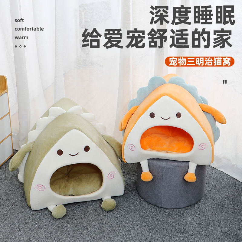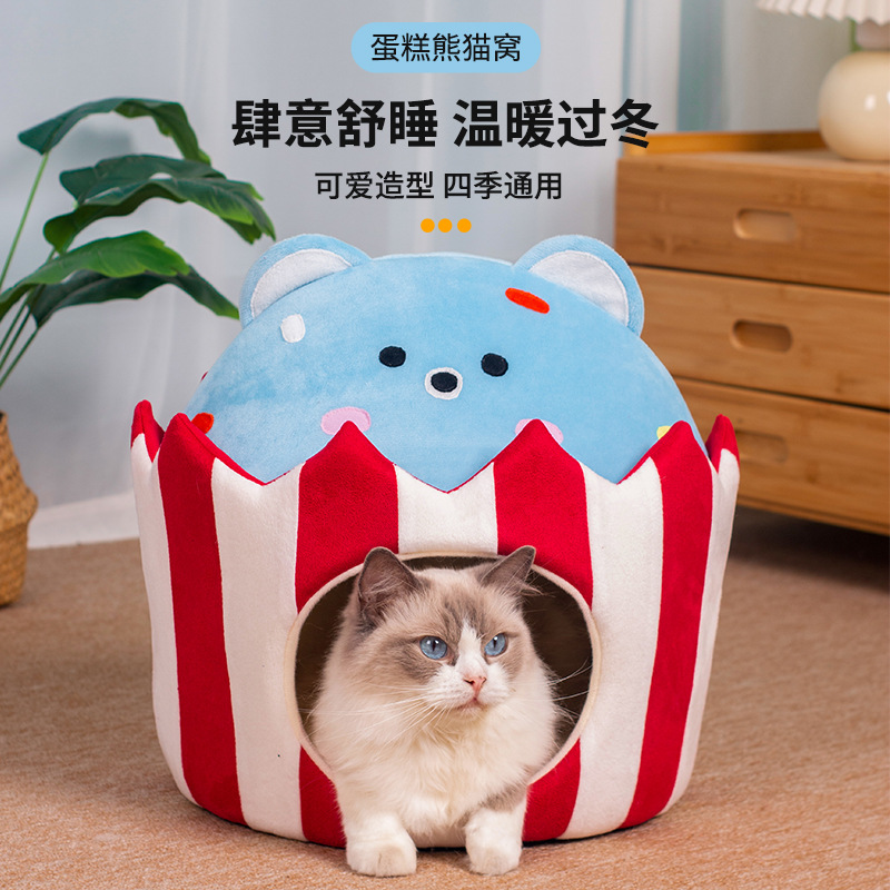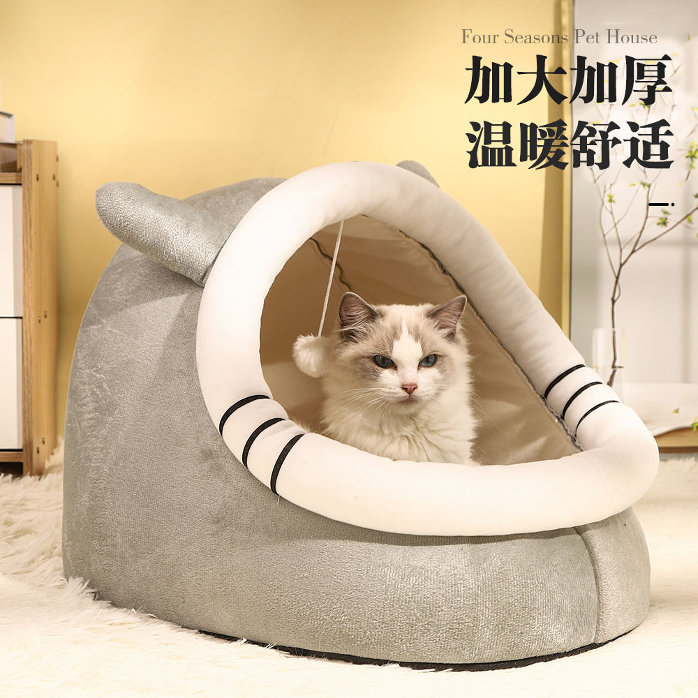 Sarang kucing musim gugur dan musim dingin hangat semi-tertutup rumah kucing empat musim universal tempat tidur kucing lucu kandang anjing tempat tidur hewan peliharaan pabrik