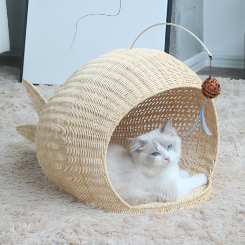 Rotan ekspor lintas batas produk hewan peliharaan rumah kucing setengah tertutup gaya Jepang