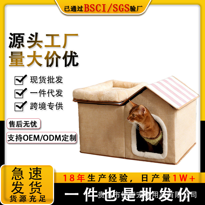 Sarang kucing sarang anjing tempat tidur kucing bayi rumah kucing semi-tertutup kandang anjing empat musim universal sarang hewan peliharaan produsen