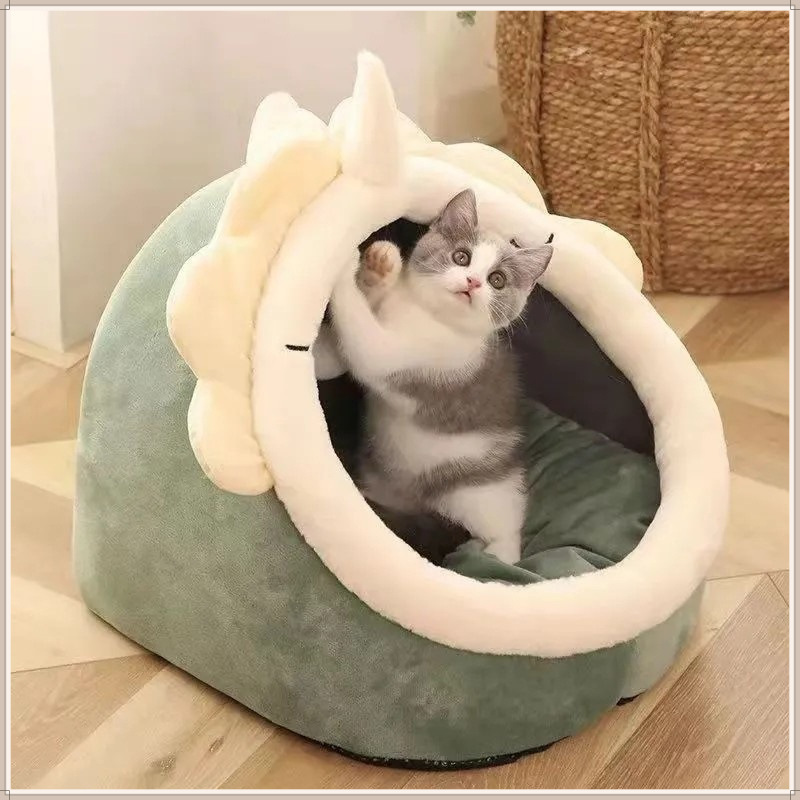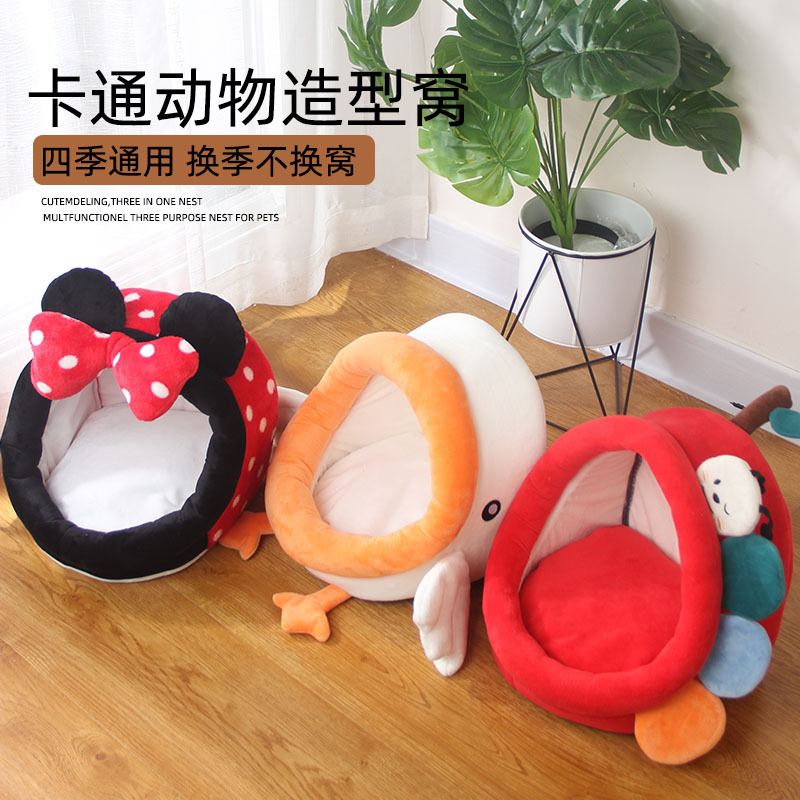 Kartun lucu empat musim sarang hewan peliharaan katun suede pp sarang kucing hewan peliharaan semi-tertutup perlengkapan hewan peliharaan kucing
