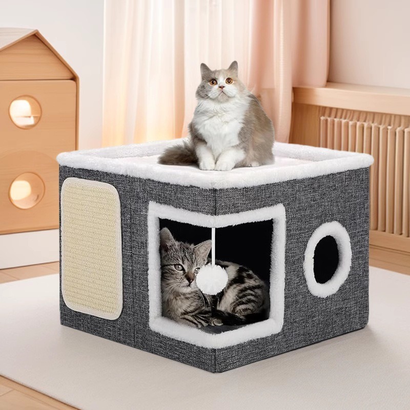 Sarang kucing lipat dengan papan gores kucing pujian produk populer tertutup empat musim universal dua lapisan sarang hewan peliharaan rumah kucing Villa