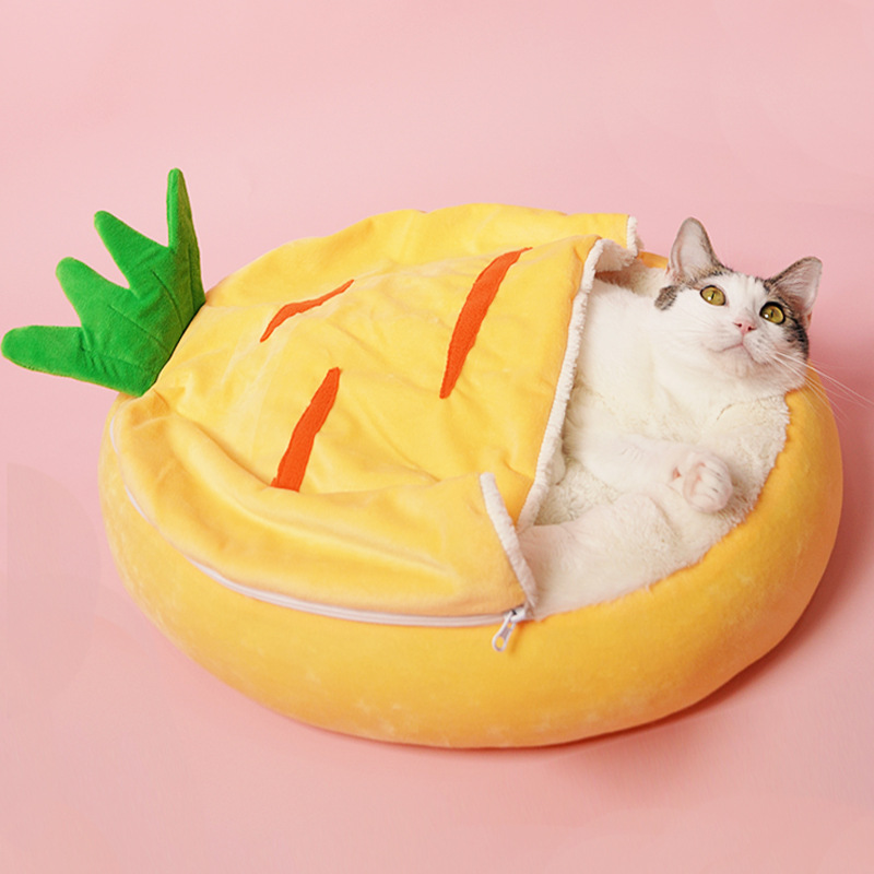 Kandang kucing semi-tertutup, kantong tidur sarang kucing hangat musim dingin yang dapat dilepas dan dicuci tidur dalam wortel grosir
