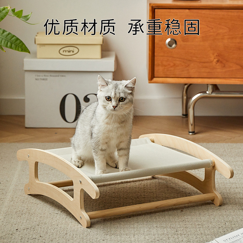 Tempat tidur kucing universal empat musim, tempat tidur gantung kucing kayu padat universal yang dapat dilepas dan dicuci untuk tanah hewan peliharaan goyang kursi Kemah alas kandang kucing