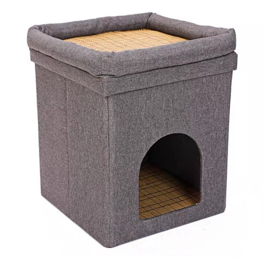 Rumah Kucing Linen Lapisan Ganda Katun Lipat Empat Musim Universal Musim Gugur Musim Dingin Hangat Semi Tertutup Hewan Peliharaan Sarang Kucing Villa