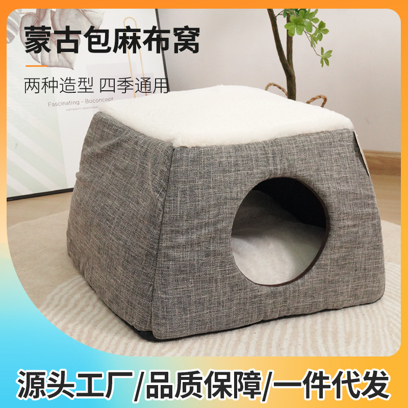 Kandang kucing sarang hewan peliharaan kecil dan sedang rumah anjing teddy rumah anjing tempat tidur anjing empat musim dingin dan musim panas tas Mongolia penggunaan ganda