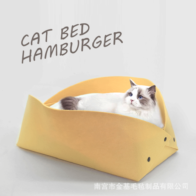 Grosir empat musim Universal felt sarang kucing datar dengan pegangan sarang hewan peliharaan datar bisa dilepas dan dicuci
