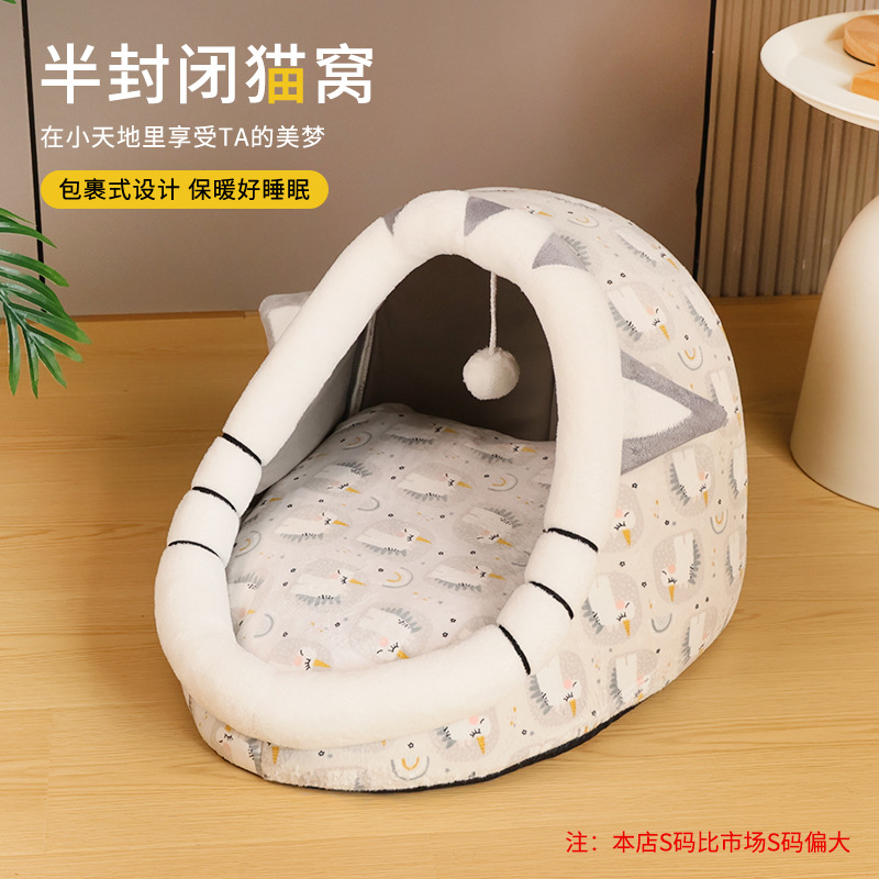 Sarang kucing empat musim, sarang kucing musim dingin, sarang anjing, perlengkapan universal, tempat tidur kucing tertutup, dapat dilepas dan dicuci, semi-tertutup