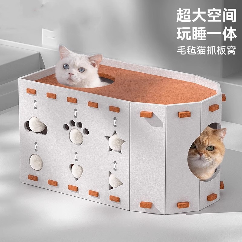 Sarang kucing lipat dengan papan gores kucing pujian produk populer tertutup empat musim universal dua lapisan sarang hewan peliharaan rumah kucing Villa