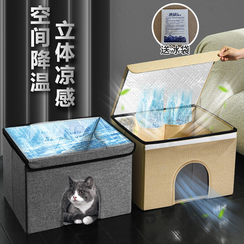 Rumah kucing musim panas AC, sarang hewan peliharaan luar ruangan, sarang kucing pendingin lipat isolasi pet empat musim Universal