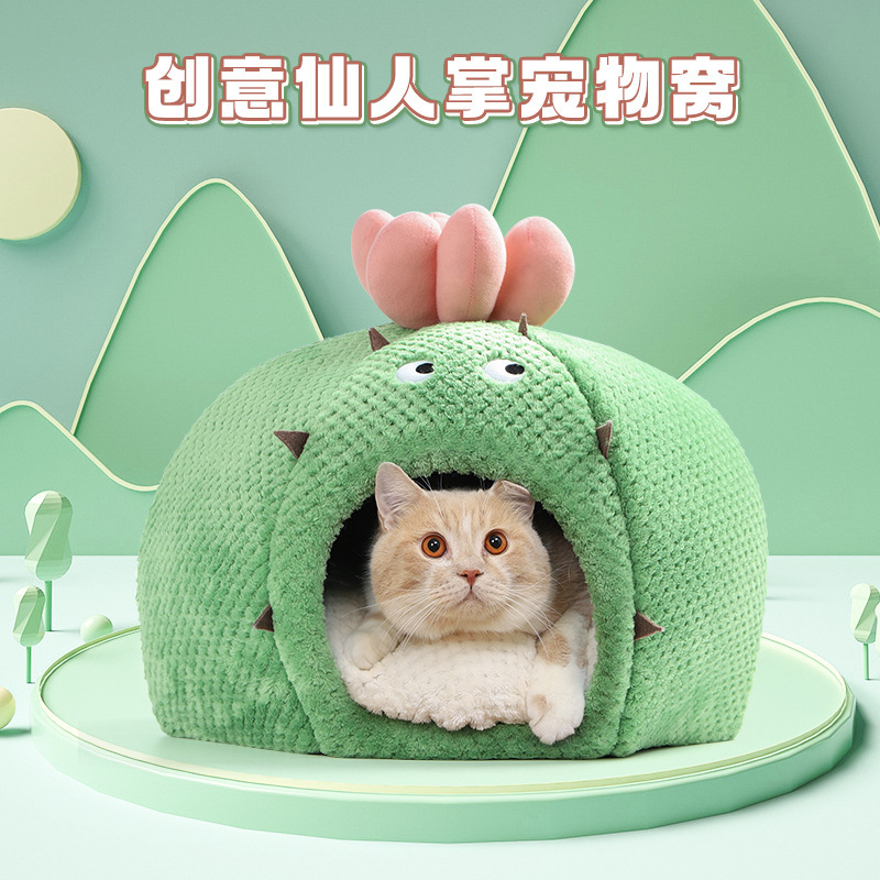 Tas Mongolia kaktus baru tempat tidur kucing hangat sarang kucing grosir rumah kucing semi-tertutup perlengkapan musim dingin kandang anjing teddy
