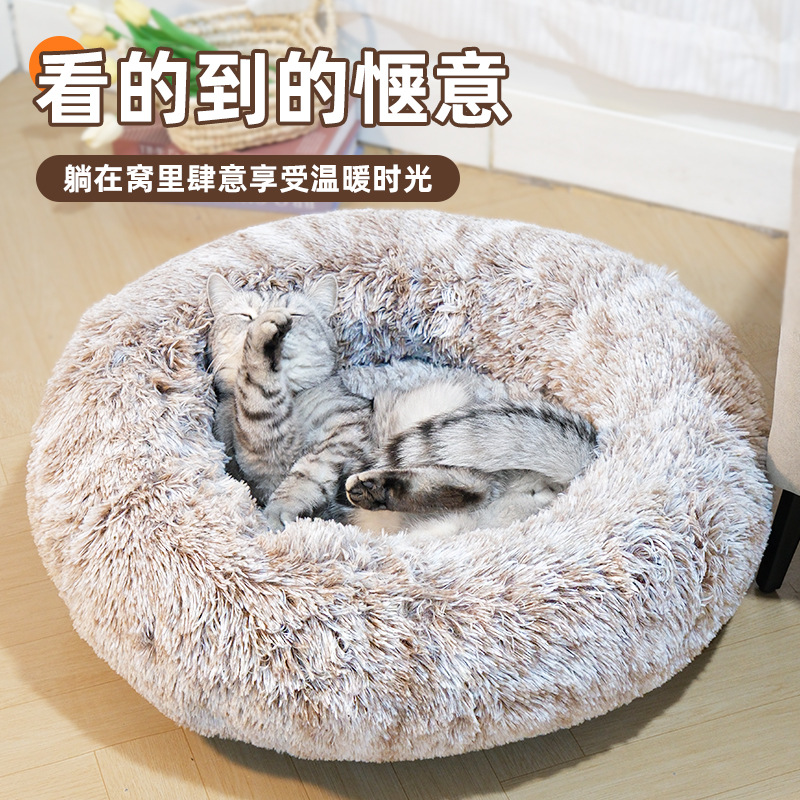 Tempat tidur hewan peliharaan bulat lintas batas, sarang kucing, tempat tidur kucing, alas tidur tebal, tempat tidur hewan peliharaan musim gugur dan dingin, sarang anjing, sarang kucing, perdagangan luar negeri