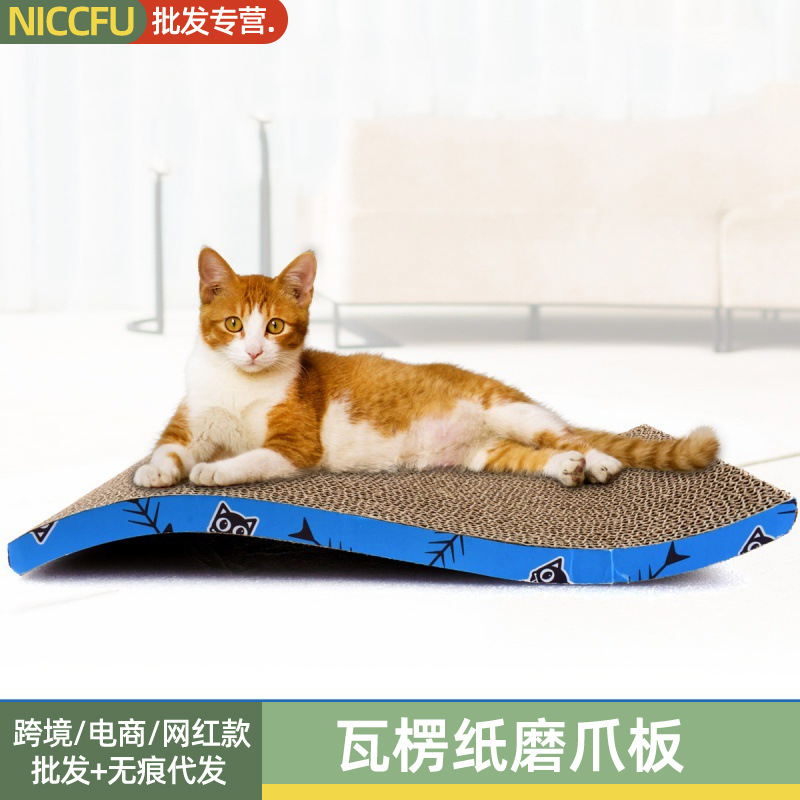 NC mainan papan goresan kucing bantalan cakar kertas bergelombang tempat tidur cakar kucing rasa mint bantalan gosok anti-ketombe tempat tidur cakar kucing