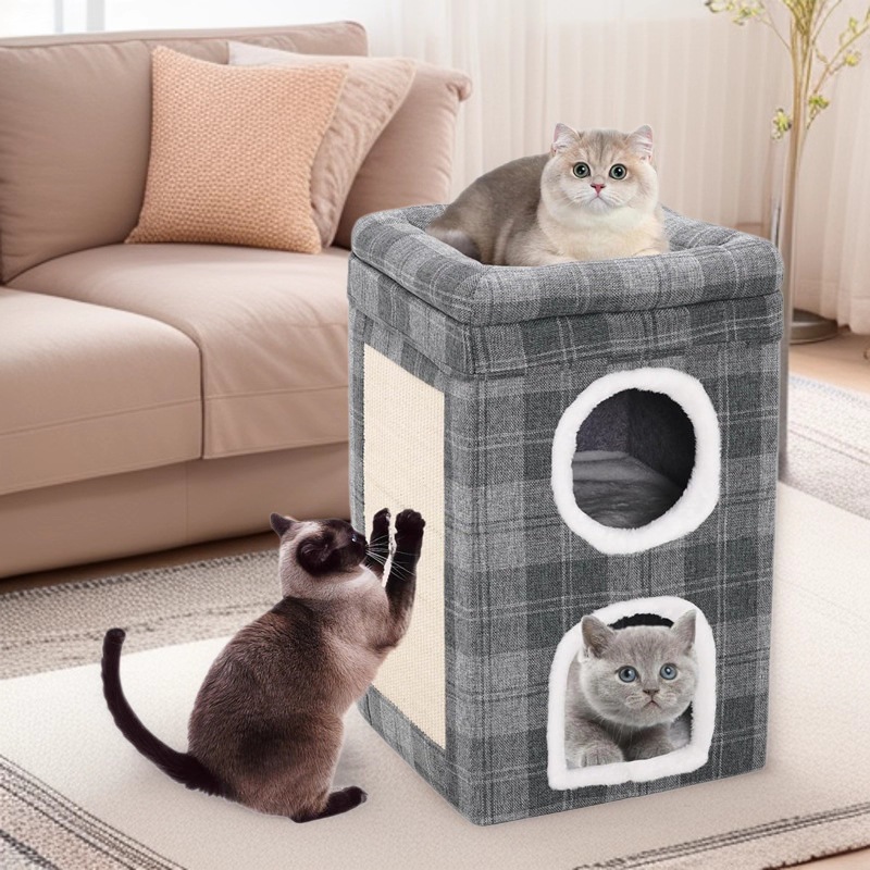 Rumah Kucing Linen Lapisan Ganda Katun Lipat Empat Musim Universal Musim Gugur Musim Dingin Hangat Semi Tertutup Hewan Peliharaan Sarang Kucing Villa