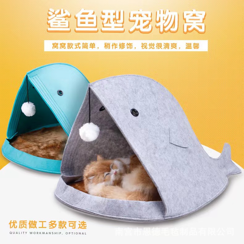 Sarang hewan peliharaan bulu Kempa lucu dapat dilipat, sarang kucing terasa dapat dicuci tipe paus hiu