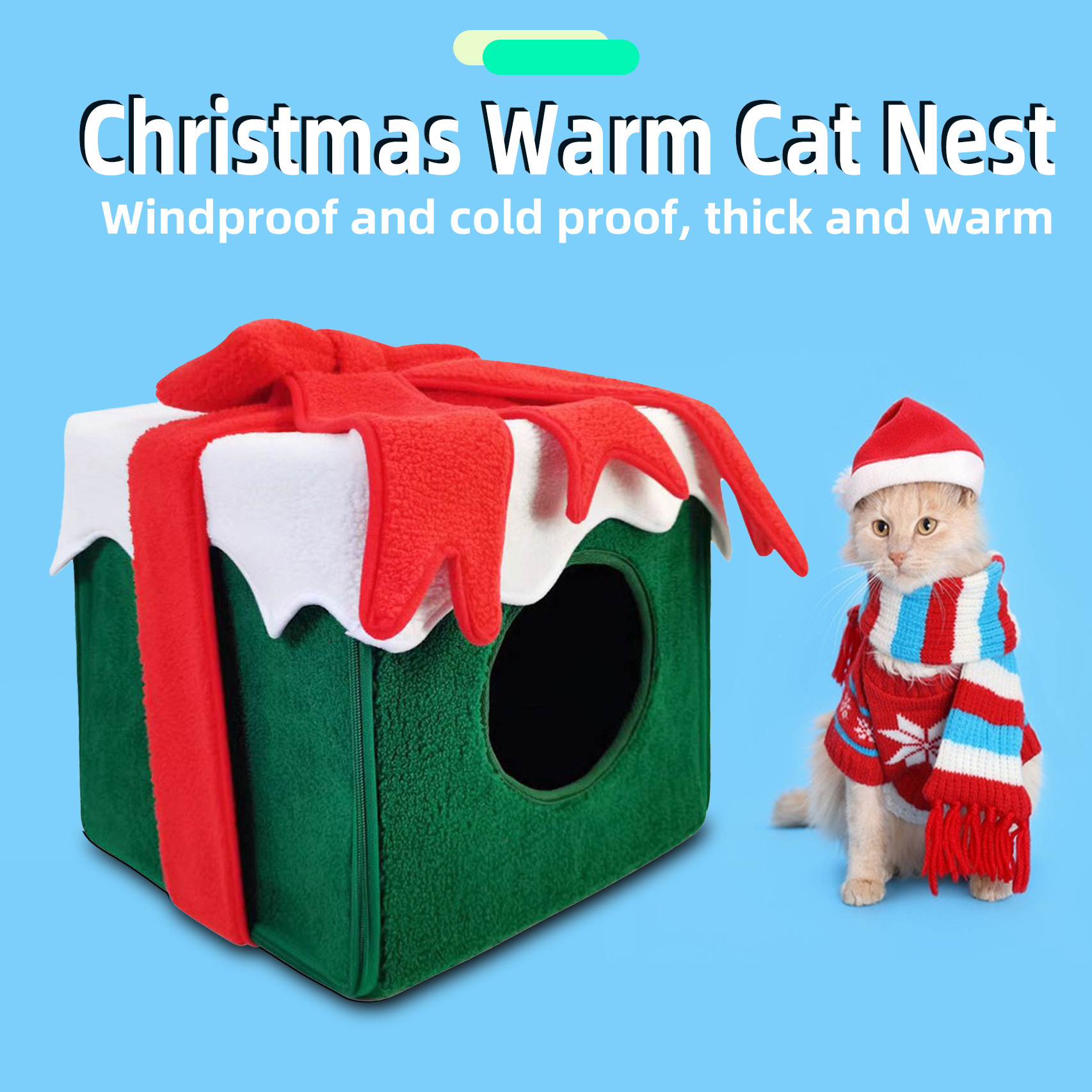 Kotak hadiah Natal sarang kucing ruang besar satu sarang penggunaan ganda sarang hewan peliharaan persegi sepenuhnya tertutup musim gugur dan musim dingin kandang hangat grosir