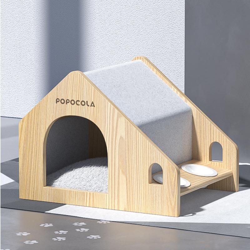 Mangkuk kucing lucu, sarang kucing terintegrasi kayu dengan karpet