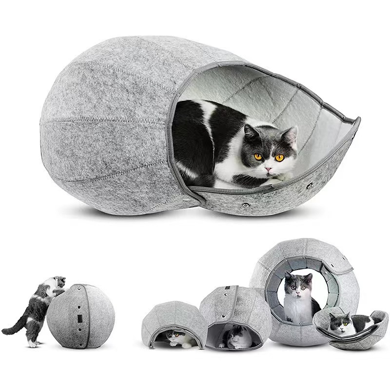 Tempat tidur hewan peliharaan, sarang kucing dapat dilipat bersirkulasi untuk terowongan gua semi-tertutup alas kucing kreatif perlengkapan kucing dan anjing