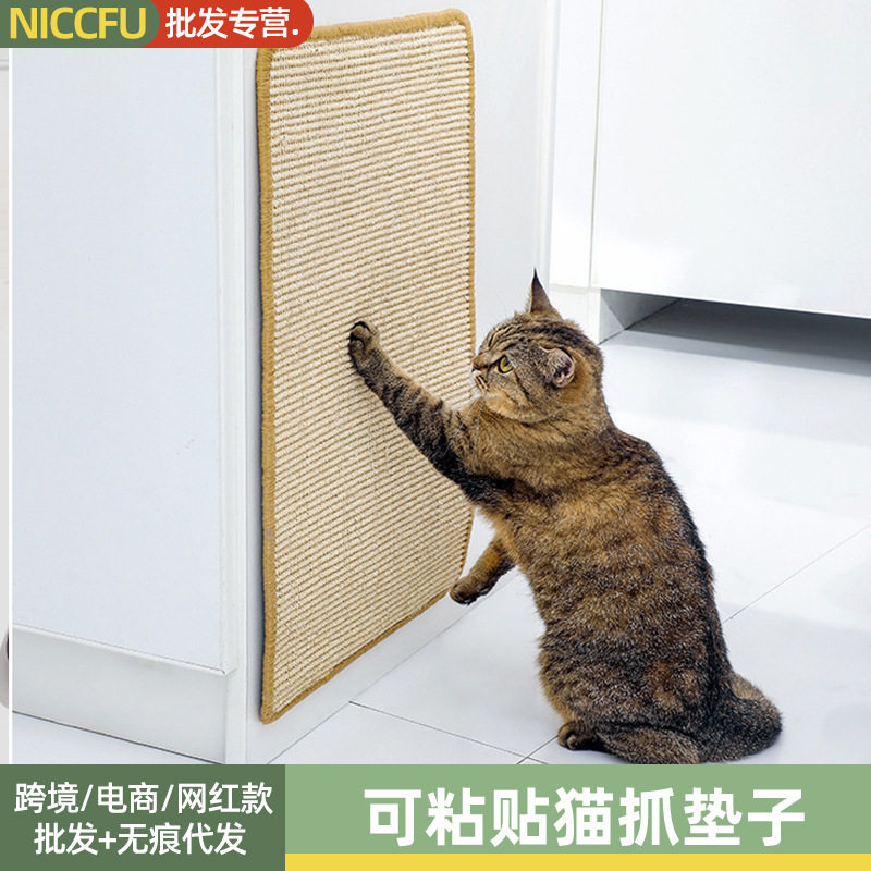 Alas tidur cakar hewan peliharaan bahan linen sisal, keset tidur antigores kucing pelindung sofa pinggiran kunci