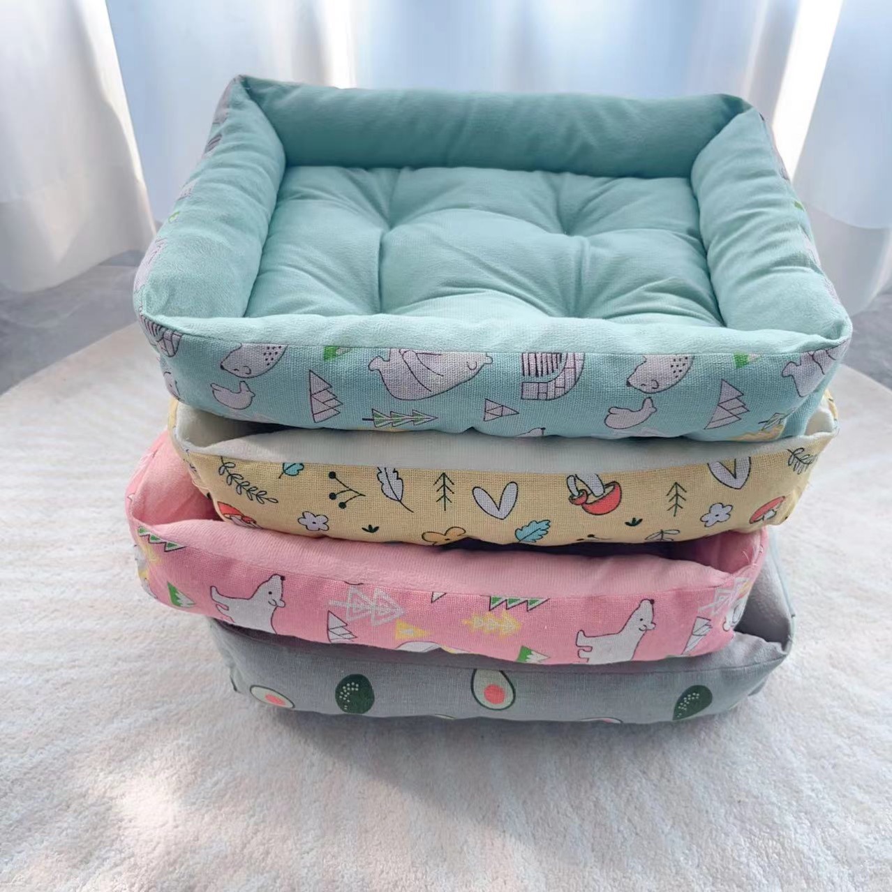 Matras hewan peliharaan kotak-kotak, tikar tidur musim panas bisa dilepas dan dicuci, sarang kucing terbuka dengan bantal Produk Baru