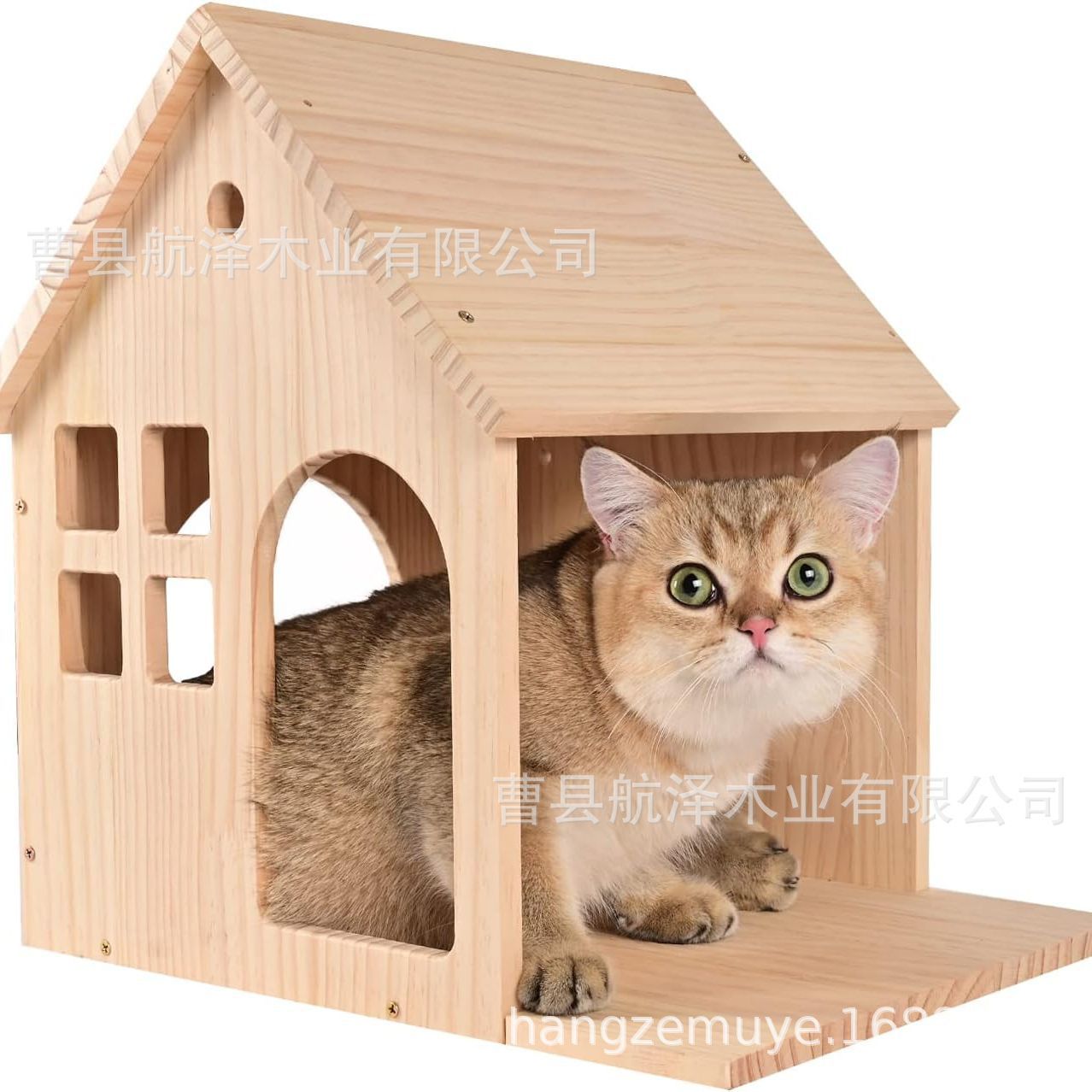 Sarang kucing kayu rumah kucing luar ruangan kayu rumah anjing sarang anjing luar ruangan rumah Jenis Villa empat musim perlengkapan kucing hewan peliharaan