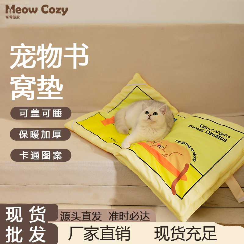 Tikar buku kucing baru, sarang kucing dapat dilipat tikar tidur hewan peliharaan mainan kucing flip menyenangkan