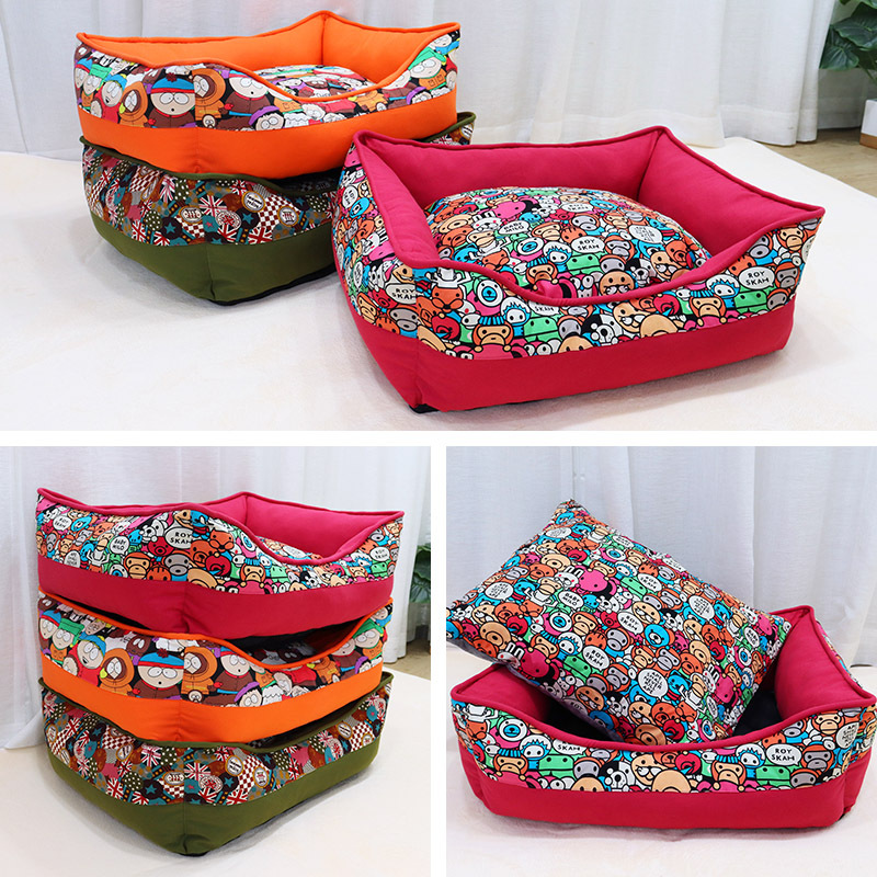 Hewan peliharaan empat musim tersedia kanvas yang dapat dilepas dan dicuci warna kontras kartun kandang anjing tahan aus gigitan perlengkapan hewan peliharaan kandang kucing sarang
