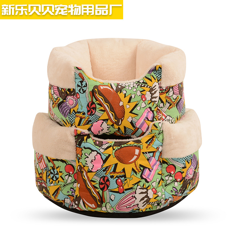 Katun kandang anjing bawah katun mengisi tidur dalam, sarang kucing yang dapat dilepas dan dicuci dikelilingi dalam kartun kuat lucu
