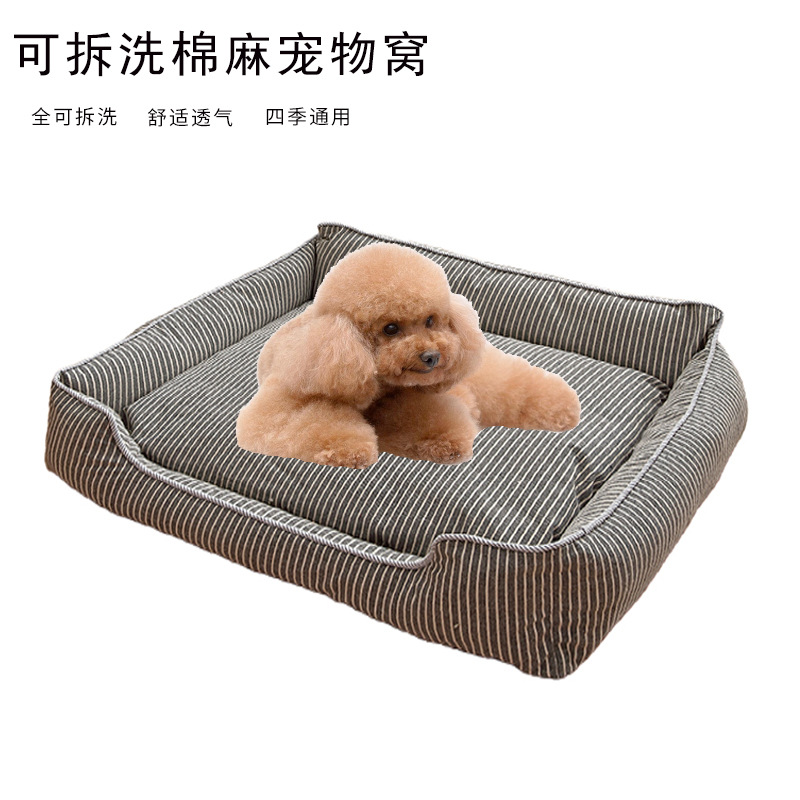 Kandang anjing peliharaan katun linen, dapat dilepas dan dicuci empat musim universal besar, sedang dan kecil