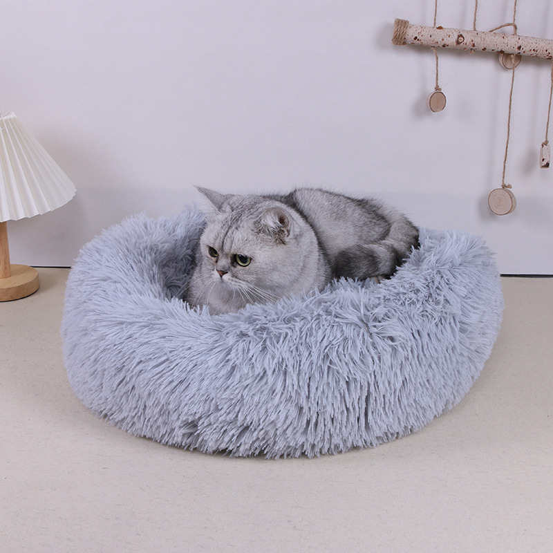 Tempat tidur hewan peliharaan, sarang kucing kandang anjing bulat mewah dapat dilepas dan dicuci, alas hangat, perlengkapan hewan peliharaan