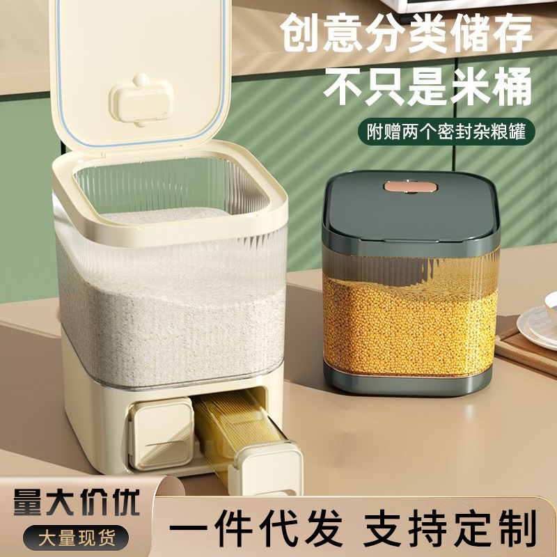 Wadah beras rumah tangga bersekat, kualitas makanan, anti serangga, anti lembap, wadah penyimpanan beras kedap udara, tangki penyimpanan biji-bijian, stoples penyimpanan biji-bijian campuran.