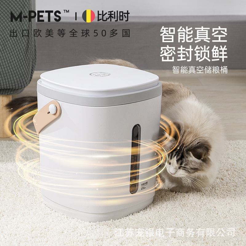 Ember penyimpanan makanan hewan peliharaan lintas batas, ember penyimpanan makanan kucing makanan anjing segar tahan kelembaban kaleng tertutup makanan vakum cerdas