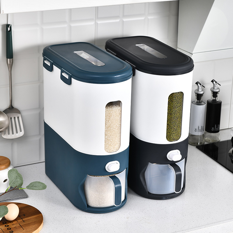Ember beras kreatif 6KG peningkatan gaya Jepang ember penyimpanan nasi mengukur 12kg menekan ember beras makanan kucing hewan peliharaan ember penyimpanan makanan anjing