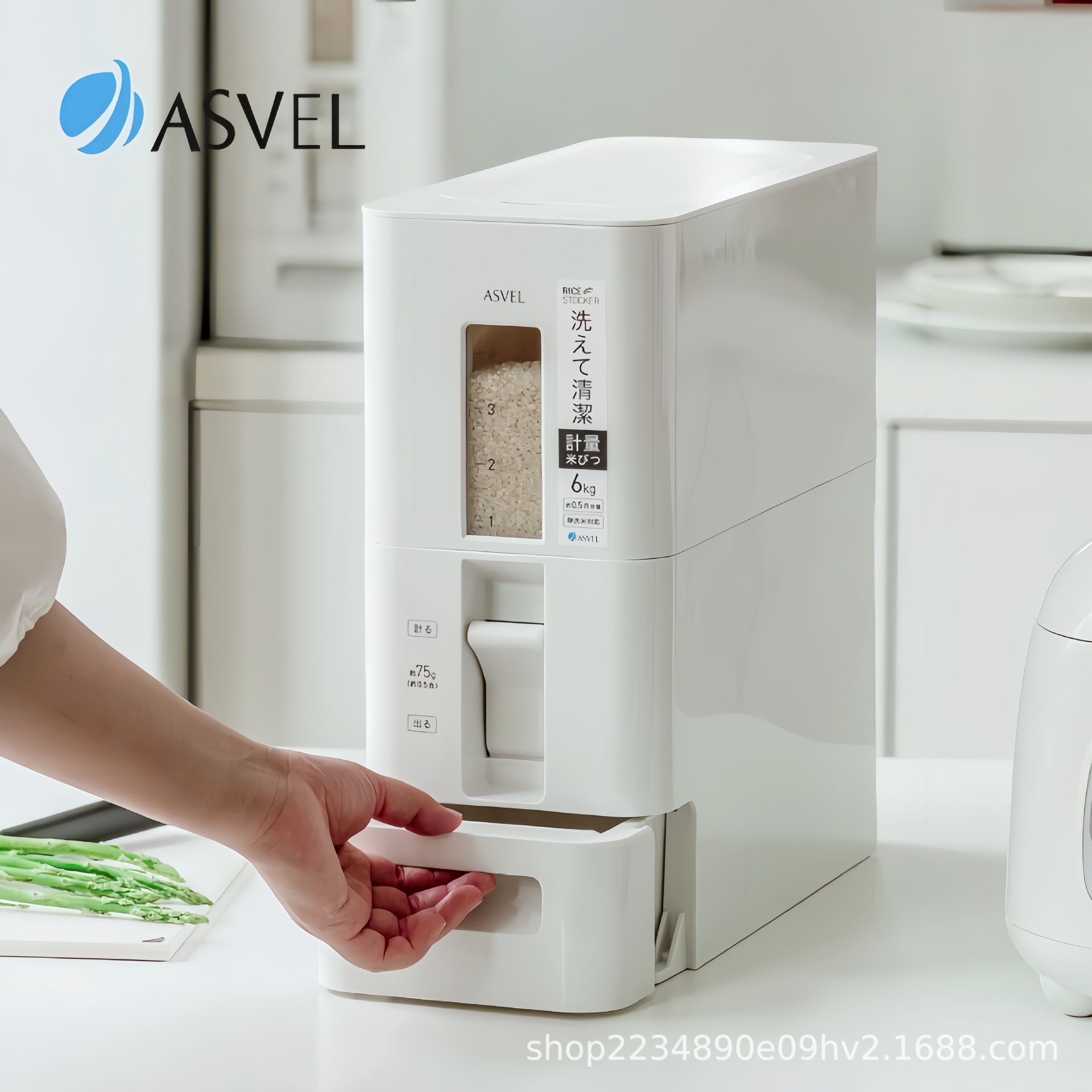 ASVEL Ember Beras Anti Serangga Anti Air Tahan Air Silinder Beras Otomatis Kotak Penyimpanan Sereal Sereal Kotak Penyimpanan Penyimpanan Biji-Bijian Lintas Batas Rumah Tangga
