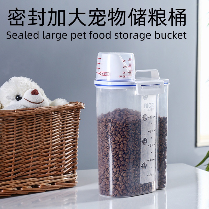 Persediaan hewan peliharaan Amazon ember makanan anjing baru ember tersegel ember penyimpanan makanan hewan peliharaan skala gratis cangkir makanan kucing grosir