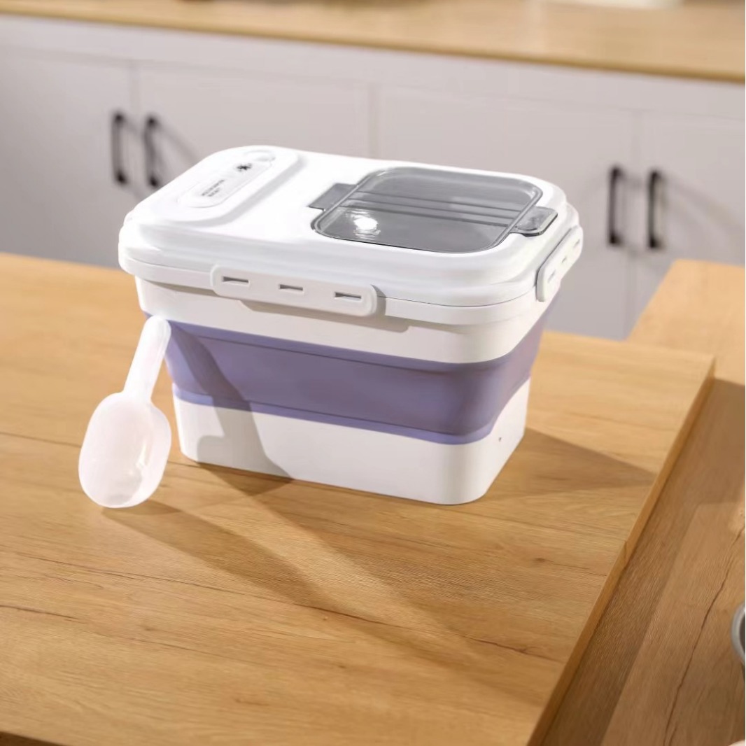 Amazon ember makanan anjing lipat, kotak nasi, ember penyimpan beras, anti lembap, tahan jamur, Dapur, dengan sendok pengukur