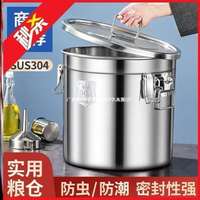 Barel Beras Stainless Steel 304 Ekstra Tebal Tepung Rumah Tangga Penyimpan Beras Ember Sup Segel Tangki Minyak Tahan Air Serangga