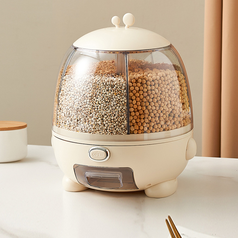Kotak penyimpanan gandum, wadah penyimpan gandum berputar anti serangga, anti lembab, otomatis, kompartemen beras, ember biji-bijian