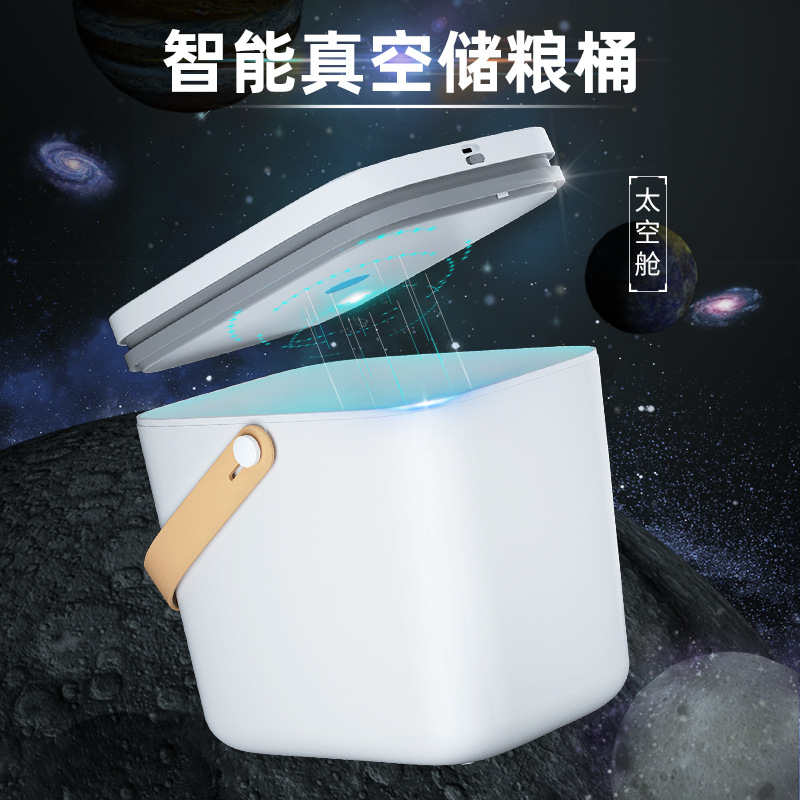 Ember penyimpanan makanan vakum cerdas hewan peliharaan satu klik vakum makanan hewan peliharaan disegel tahan kelembaban ember makanan kucing dan anjing segar ukuran besar