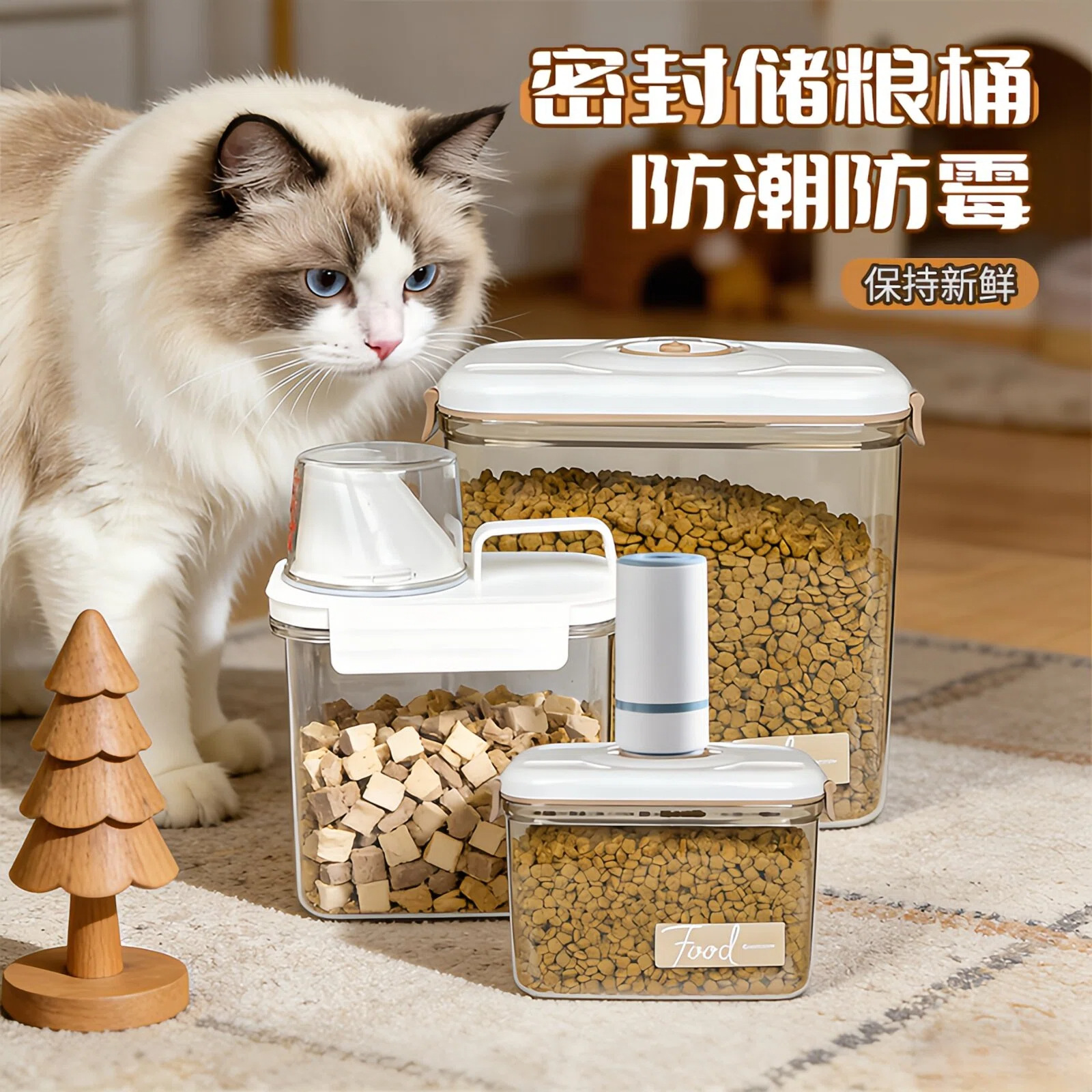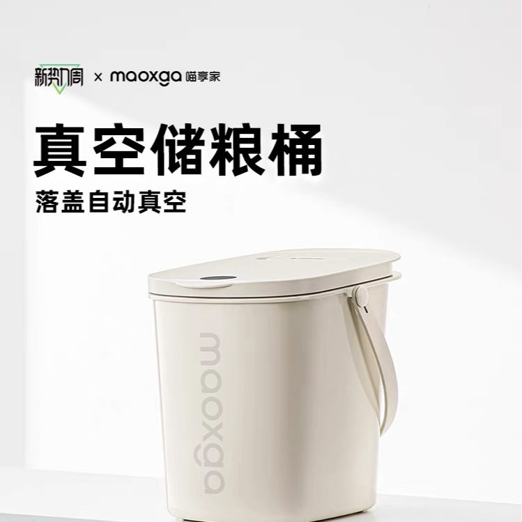 Ember penyimpanan makanan vakum cerdas, ember penyimpanan makanan hewan peliharaan kapasitas besar, kunci tahan air satu klik, vakum makanan kucing, makanan anjing