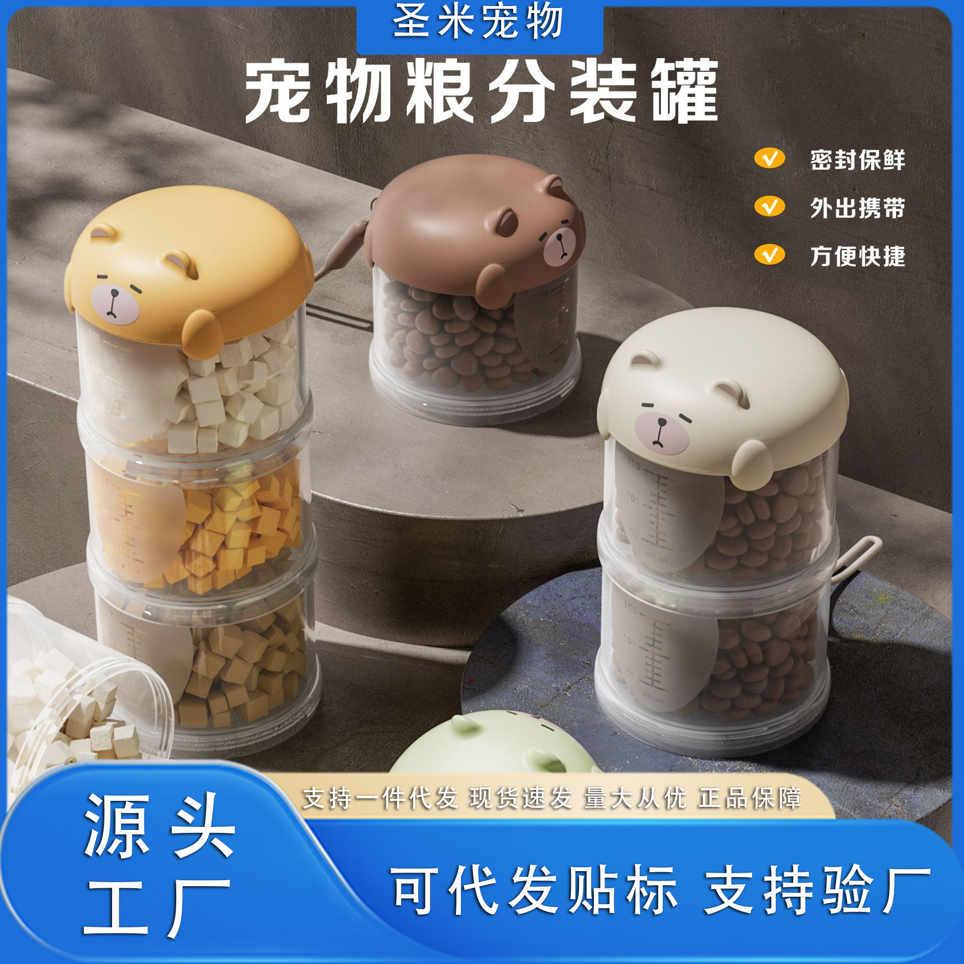 Ember penyimpanan makanan hewan peliharaan gaya Jepang sederhana disegel makanan anjing kucing ember makanan kapasitas besar penyimpanan makanan ringan disegel jar perlengkapan grosir