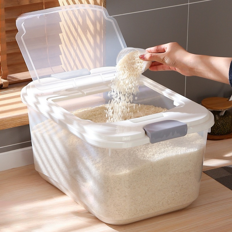 Ember Beras Rumah Tangga Kapasitas Besar Penyegelan Anti Serangga Penyimpan Serangga Penyimpan Sereal Sereal Stolles Beras Ukuran Besar Transparan