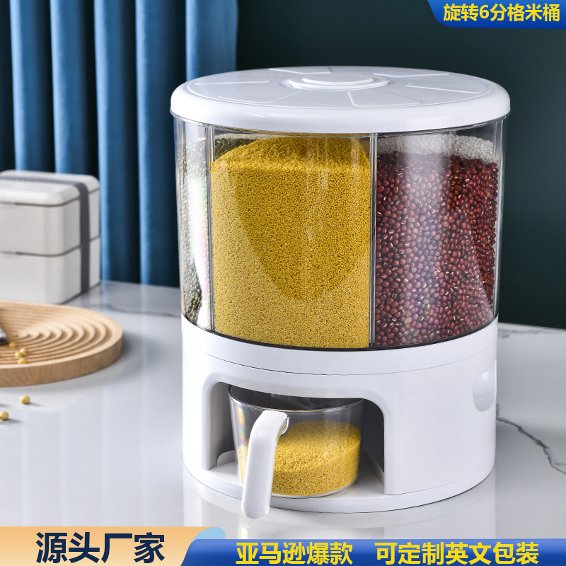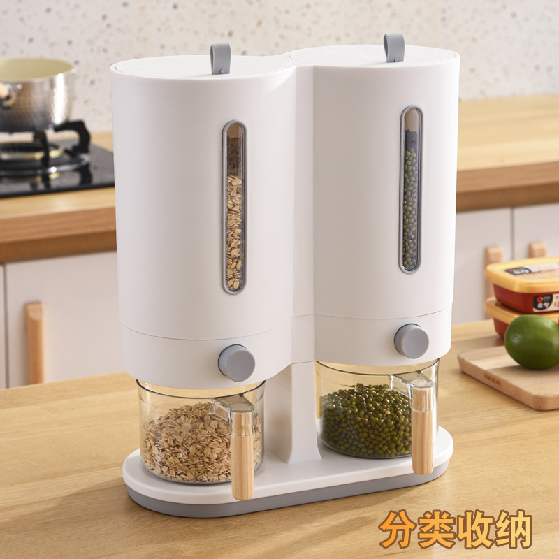 Kotak penyimpan nasi Dapur gaya Jepang, kotak penyimpanan beras gandum, kompartemen penyimpanan gandum, ember beras Putar Rumah Tangga