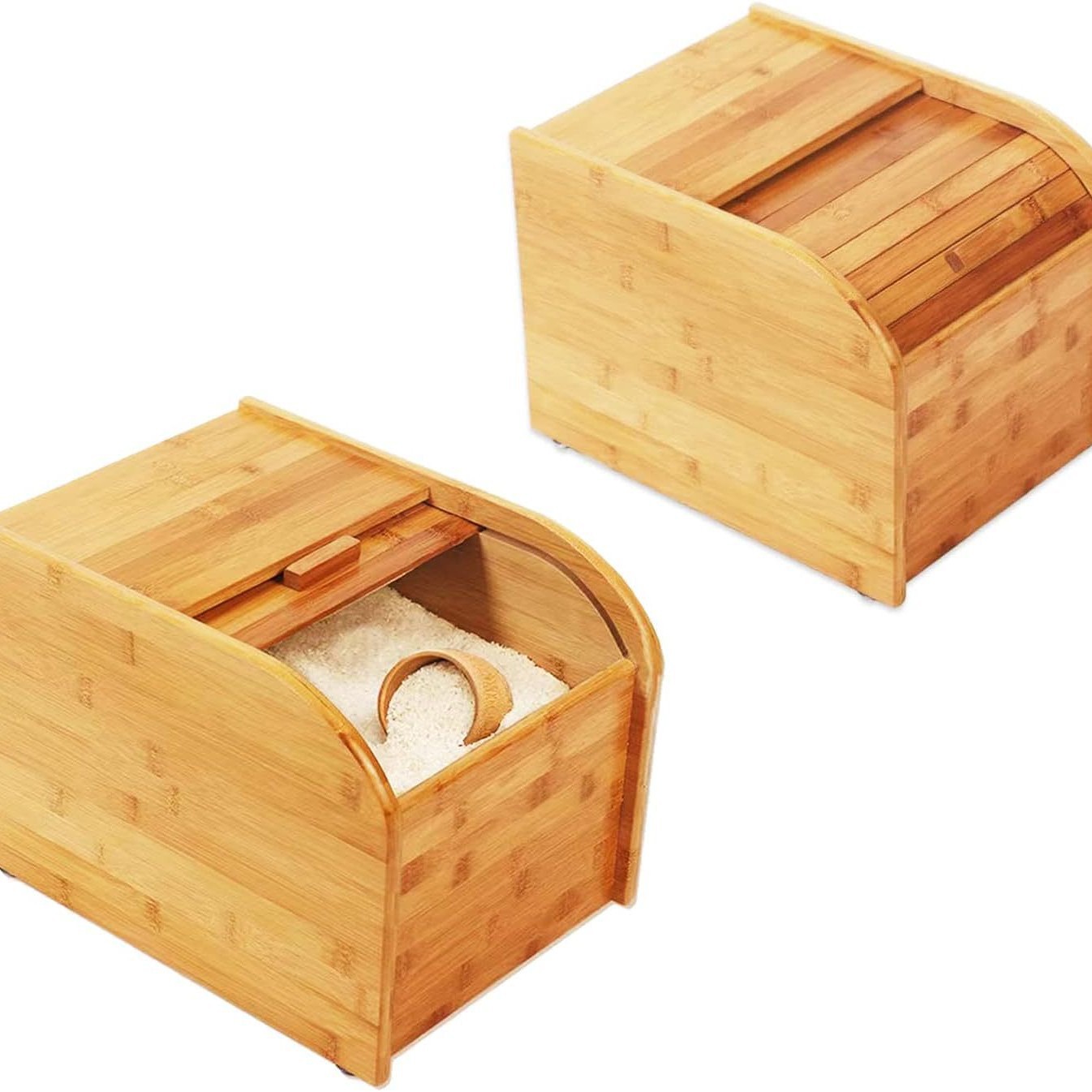 Ember Beras Kayu Kotak Penyimpanan Wadah Beras Millet Rumah Tangga dengan Penutup Geser Tahan Air dengan Gelas Ukur Penyimpanan Gabah