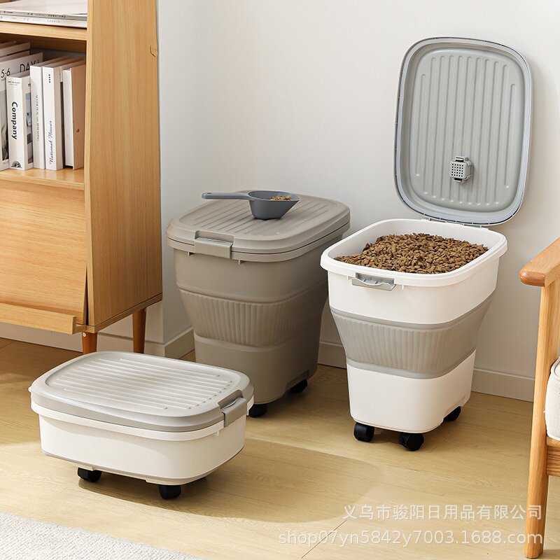 Barel Makanan Anjing Lipat Hewan Peliharaan Barel Beras Roda Ponsel Barel Penyimpanan Makanan Rumah Tangga Kotak Penyimpanan Tersegel dan Penyimpanan Gaya Jepang Anti Serangga