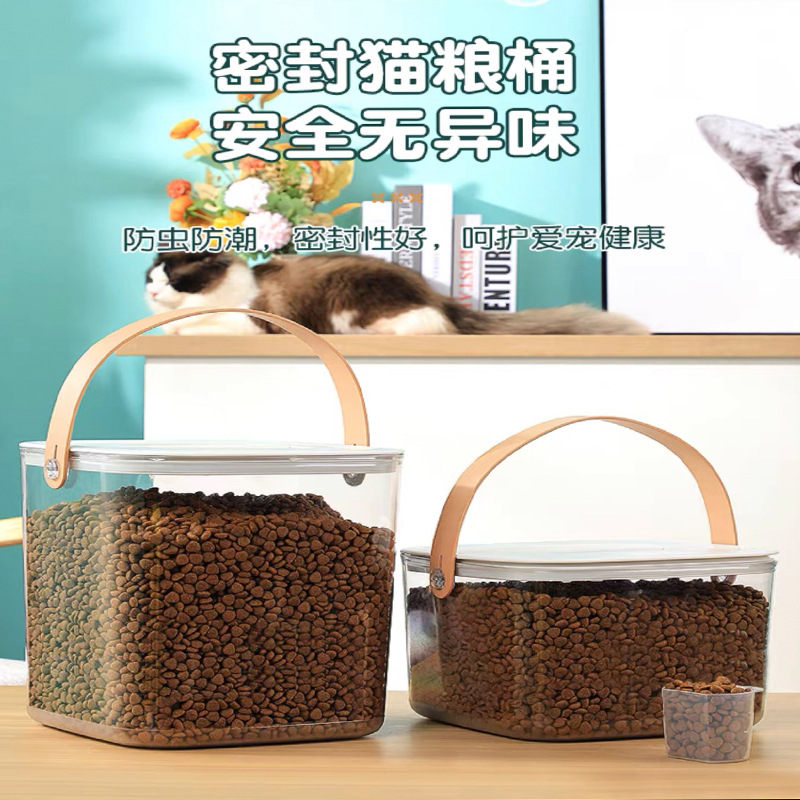 Ember penyimpanan makanan kucing, kotak penyimpanan rumah tangga, wadah makanan kucing anti lembab, ember penyimpan makanan kucing