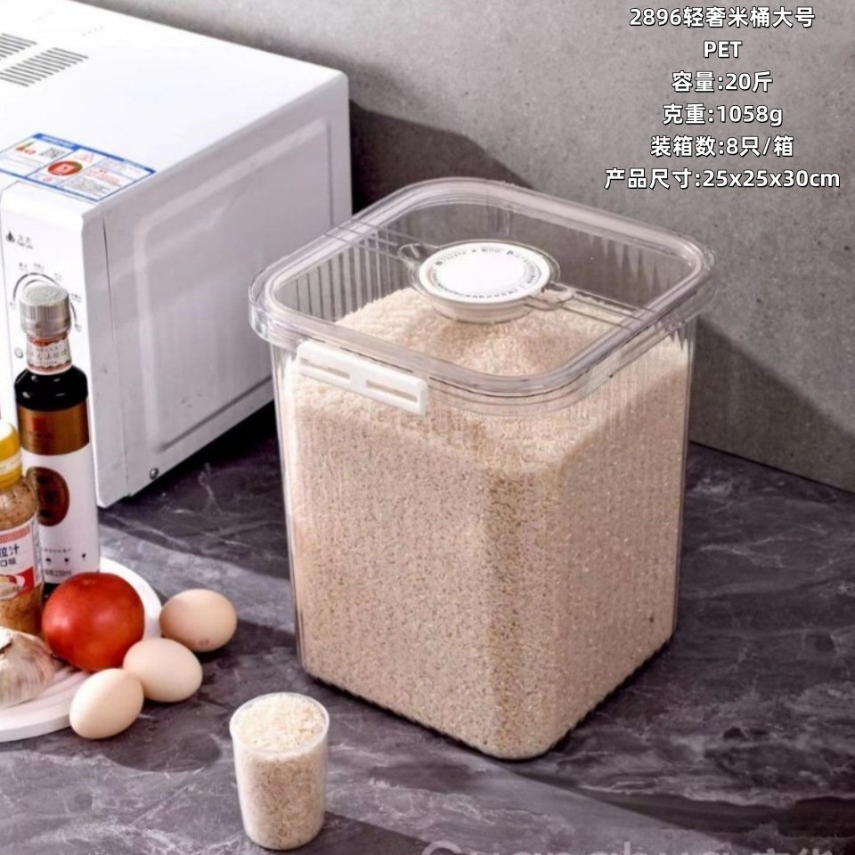 Ember Beras Rumah Tangga Kapasitas Besar Penyegelan Anti Serangga Penyimpan Serangga Penyimpan Sereal Sereal Stolles Beras Ukuran Besar Transparan