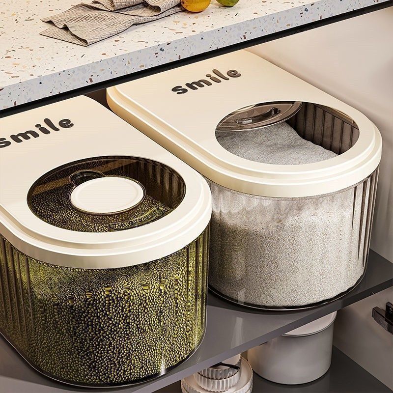 Wadah kedap udara berkapasitas besar untuk menyimpan beras, mie, tepung, dan biji-bijian di dapur, tahan lembap.