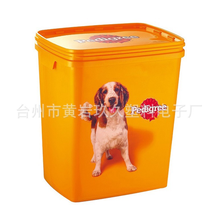 Pasokan Pabrik ekspor 10KG penyimpanan gandum hewan peliharaan ember makanan anjing plastik 27L penutup makanan kucing stiker cetakan tertutup