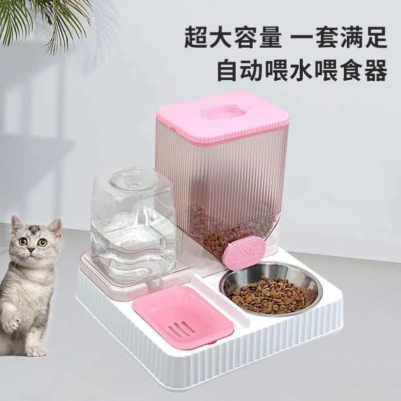 Pengumpan otomatis untuk kucing dan anjing, wadah penyimpanan makanan kucing, mangkuk kucing tahan lembab, mangkuk air kapasitas besar, mangkuk anjing.